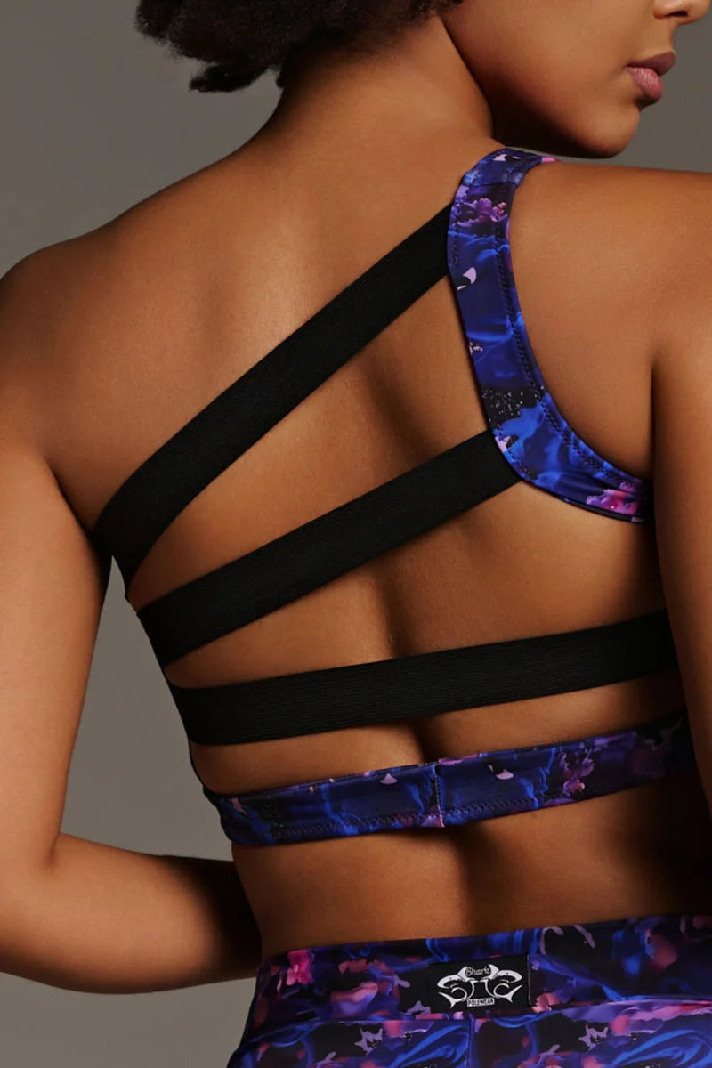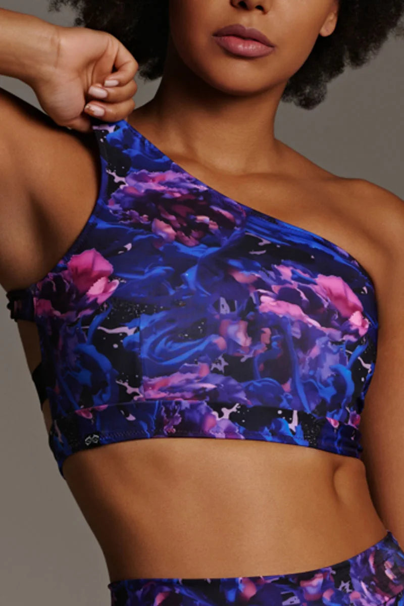 Introducing our eco-friendly Aura top, perfect for dance, fitness, and even as a swim top. This asymmetrical one-shoulder top stands out with its eye-catching design, featuring three 3.5 cm elastic bands on the back for a unique and fashionable look. Additionally, a 2 cm elastic band is seamlessly integrated into the lower portion of the top, ensuring enhanced support and a secure, comfortable fit.